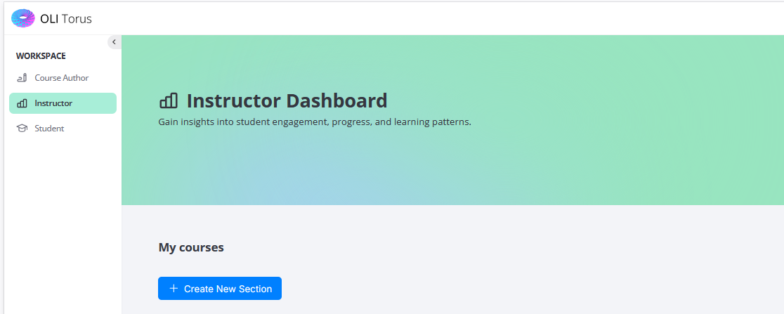 If the + Create New Section button is not active, contact oli-help@cmu.edu for instructor access for your account. - Click + Create New Section.