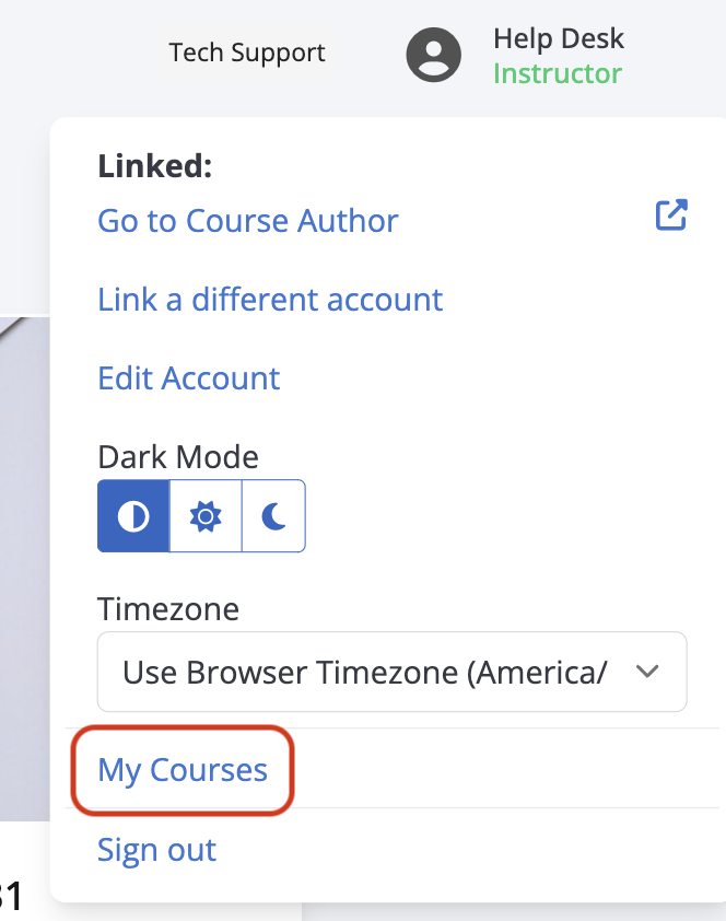 The My Courses page lists all course sections for your account, either as an instructor or as a student. Even if you have an instructor account, your account may be registered as a student in some courses. You will only have instructor permissions for the courses that you either create, or for courses for which you have been added as an instructor.